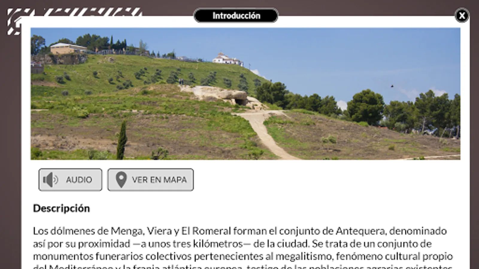 A handy guide and an audio app of the ensemble of dolmenes of Antequera (Málaga) in a one device, your own phone!. Entertaining and intuitive, the only way to know each dolmen and their interior during your visit. You will also have a memory forever of what you've seen and it costs less than a coffee.