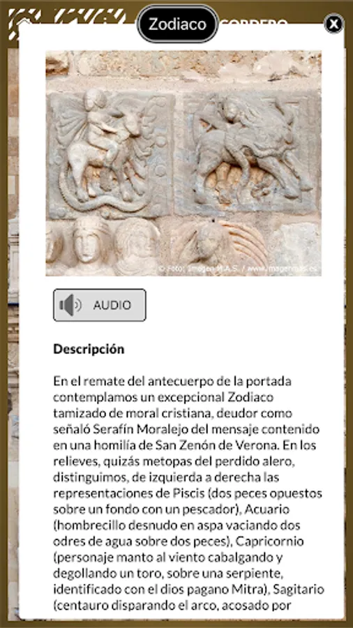 Operation easy and intuitive application allows you to discover each detail of the reliefs and know its meaning. Discover the figures and scenes of this cover, leonine masterpiece of Romanesque.