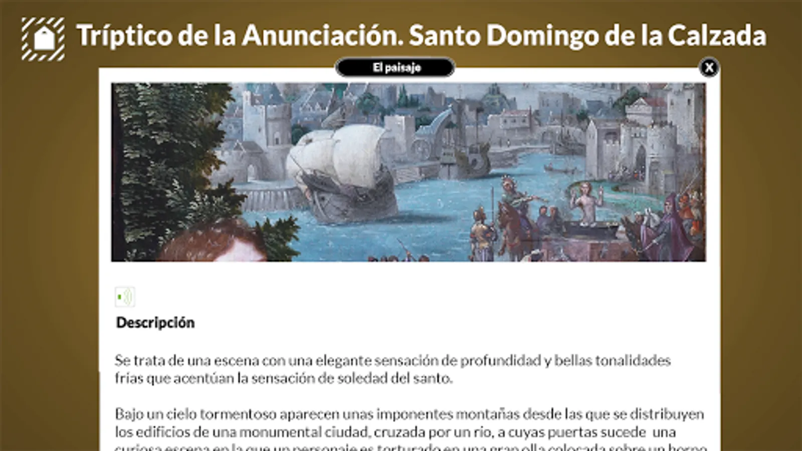 Easy and intuitive operation, the application allows you to discover every single detail of the painting and understand their significance. You've never been so close to these wonderful and amazing scenes of one of the treasures of Flemish painting preserved in Spain.