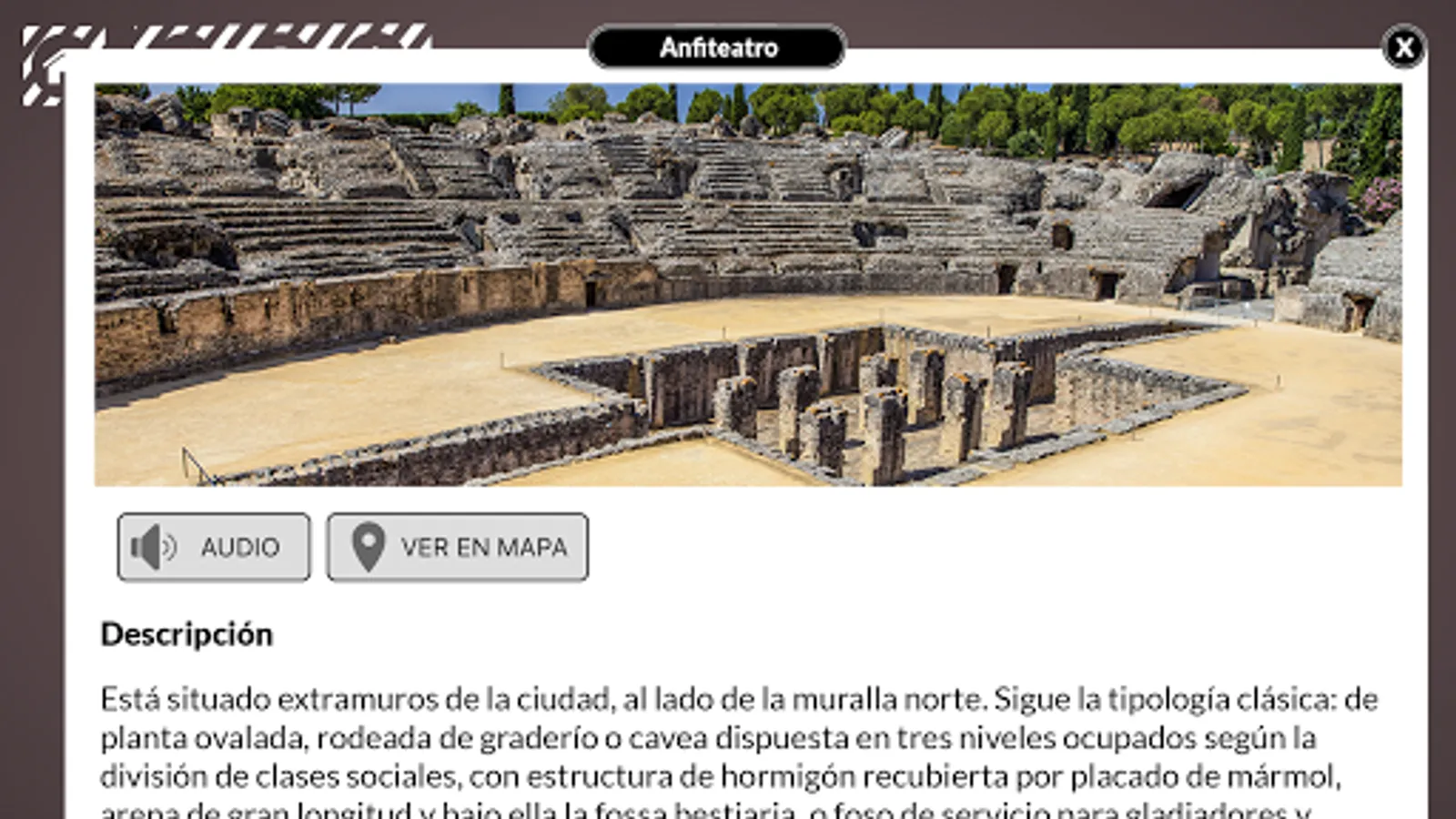 A handy guide and an audio app of the Archeological Site of Italica, in Santiponce (Seville), in a one device, your own phone!. Entertaining and intuitive, the only way to know each place and each chapel of the cathedral during your visit. You will also have a memory forever of what you've seen and it costs less than a coffee.