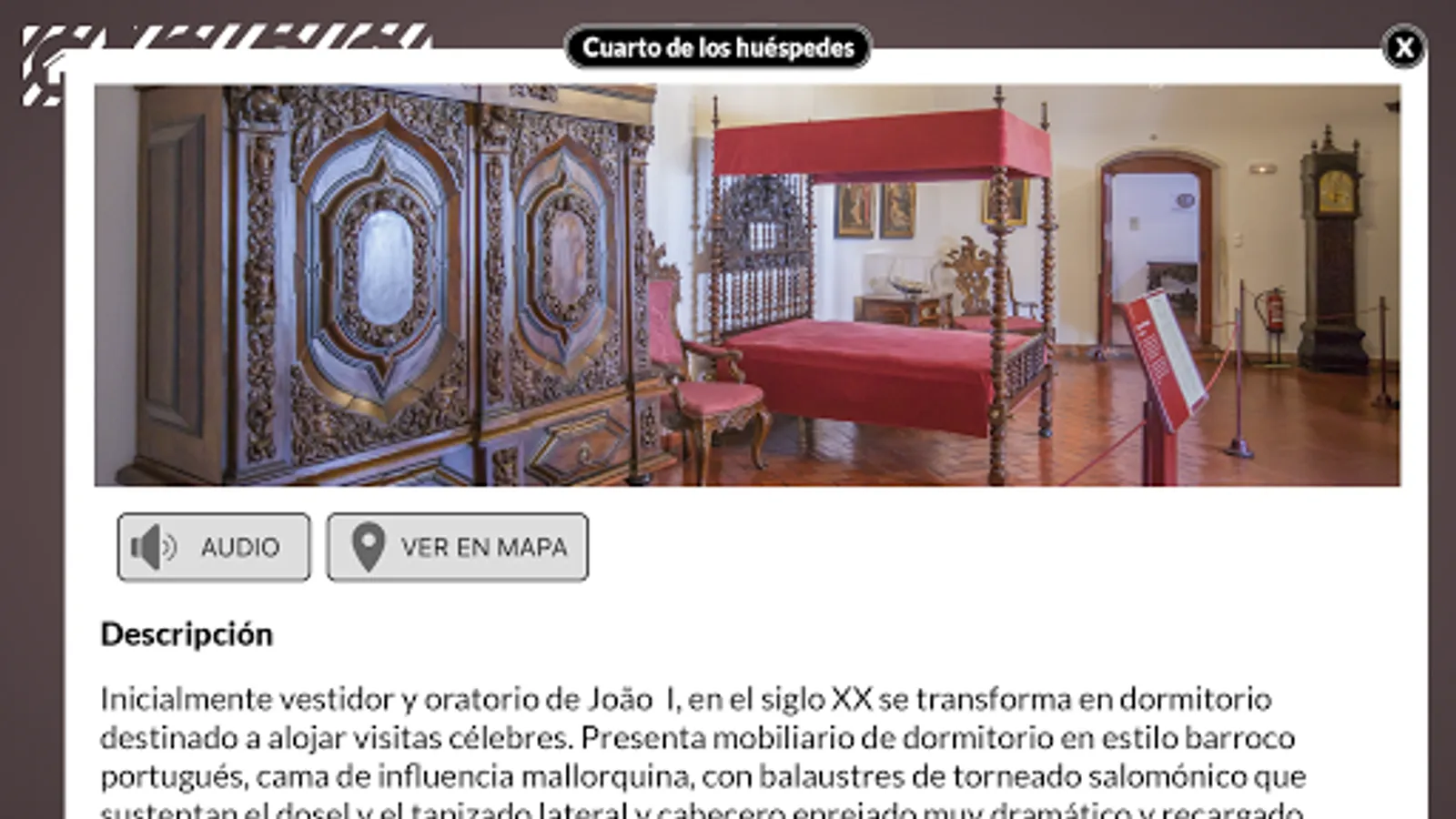 A handy guide and an audio app of the National Palace of Sintra in a one device, your own phone!. Entertaining and intuitive, the only way to know each place and each room of the palace during your visit. You will also have a memory forever of what you've seen and it costs less than a coffee.