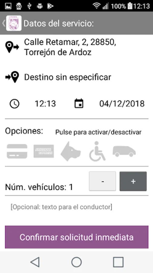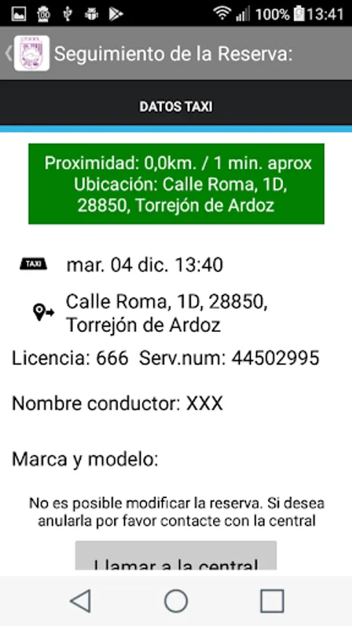 Once you have indicated your phone number and activated the location provided by your device, you can request your vehicle. You will always be shown the nearest taxi and, once the reservation is requested, you can see the license number, vehicle and driver's name. In addition, you can see the distance to which your taxi is located until it is picked up at the indicated place.