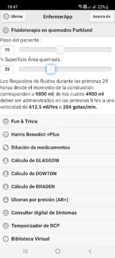 This application brings together a compendium of formulas used daily in Intensive Care units, Electrocardiography Guides and Quiz, Some basic and important notes in relation to drugs, and other trivial calculations. Its objective is to facilitate the daily work of the nurse or other health professional. - Its functional characteristics include: