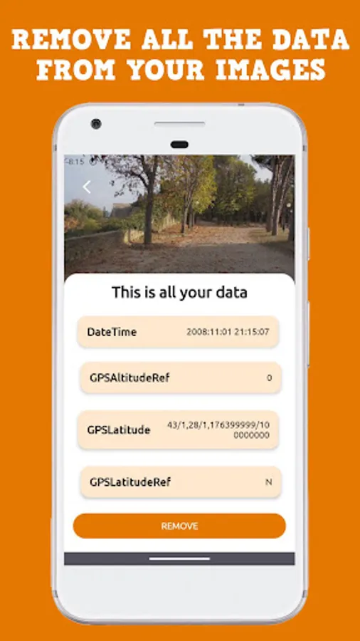 Protect your privacy with Image Exif Remover This app will delete all information from your pictures. Just choose a file and click Remove EXIF Data. Simply save the sanitized image back to your device.