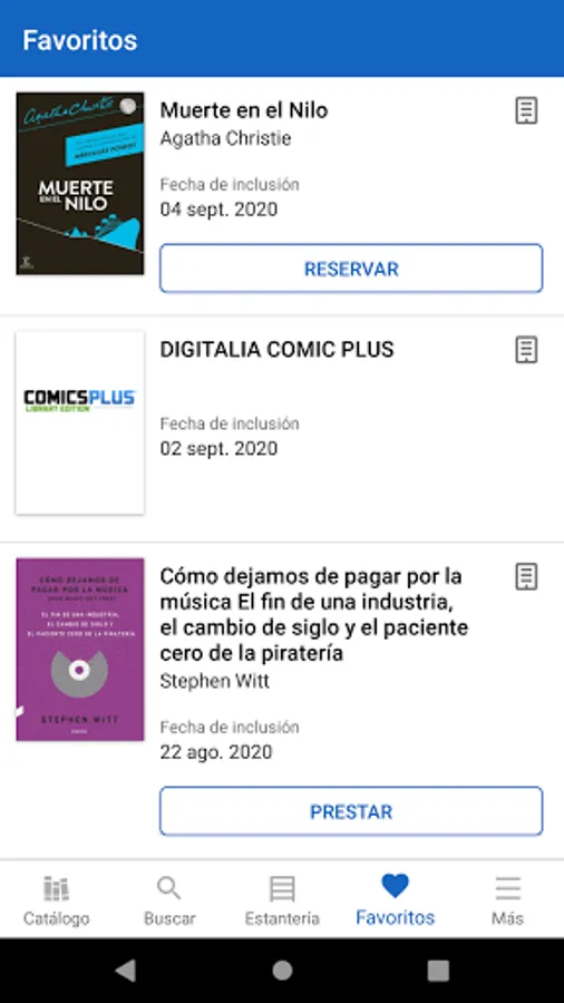 From the app you can browse the catalog, make loans and reservations, read online and download books to read without an internet connection.