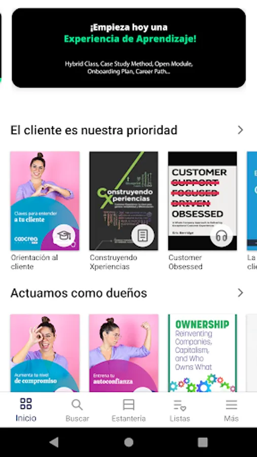 This unlimited learning ecosystem will allow you to access all the functionalities of the learning platform, including an intelligent content platform and learning experiences for Banco Pichincha. You will be able to access and download digital multimedia resources, to read/play them without the need for an Internet connection.