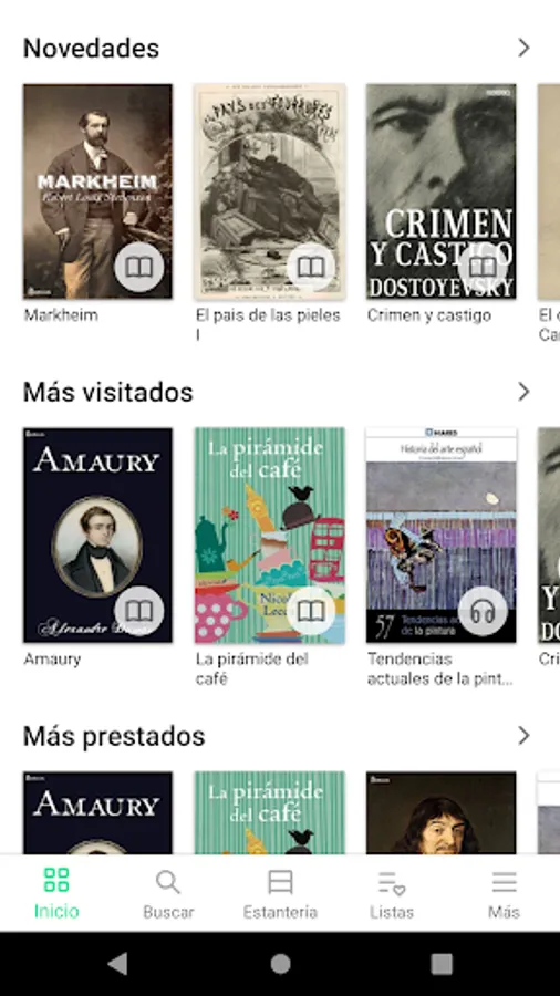 Browse the catalog, borrow titles, add titles to favorites ... Personalize the reading by changing the type, size and spacing of the letter. Access your readings offline ...
