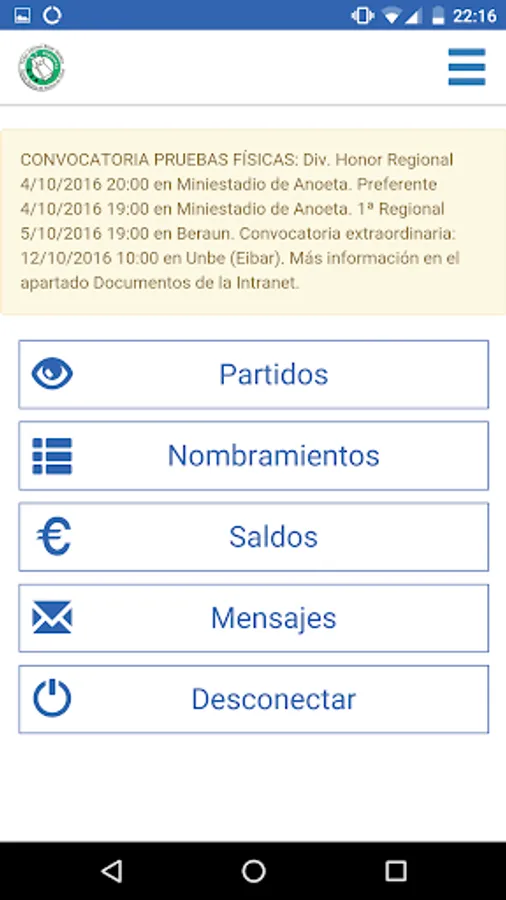 App designed to referees belonging to the CTA Gipuzkoa. Check the weekly appointments, the history of the balance in the Committee, the matches are being played, etc.