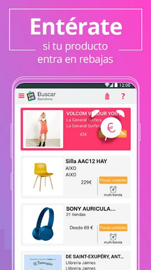 From the ease of your mobile you can locate the items you are looking for and the stores that have it available in Barcelona and surroundings. Free and fast.