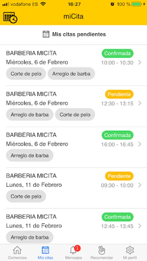 Forget calling your usual business (hairdresser, beauty center, clinic, veterinarian, etc ...). Booking an appointment now is easier than ever. With the miCita App you can contact your usual shops and reserve your services online, with just a few clicks and in a few seconds.