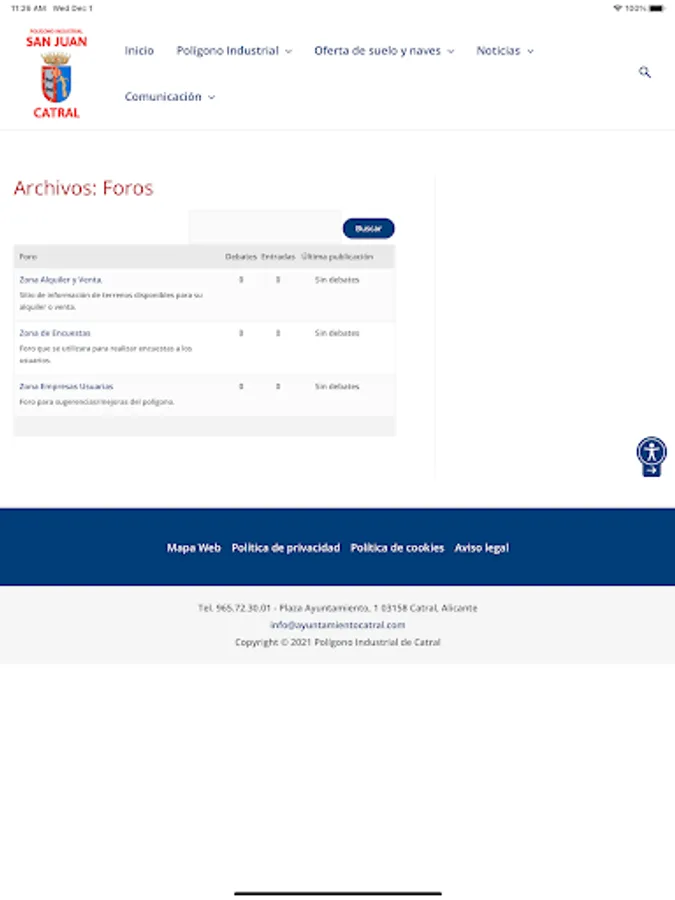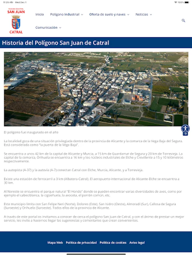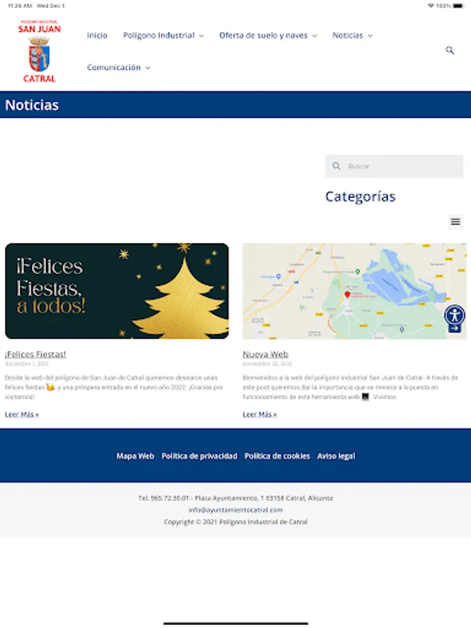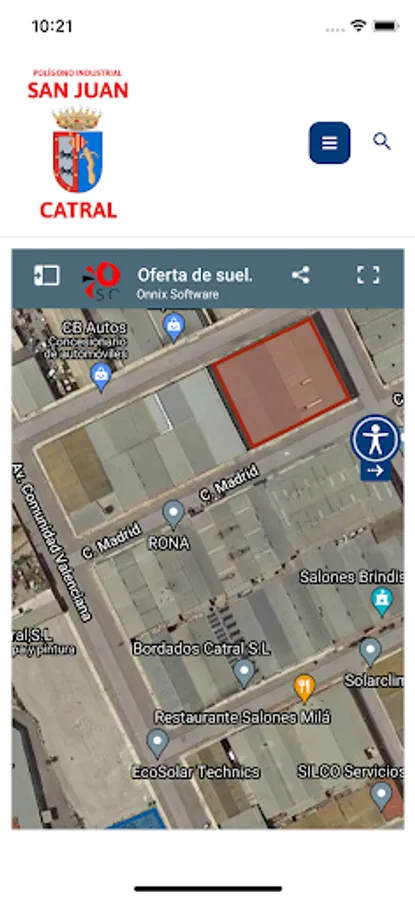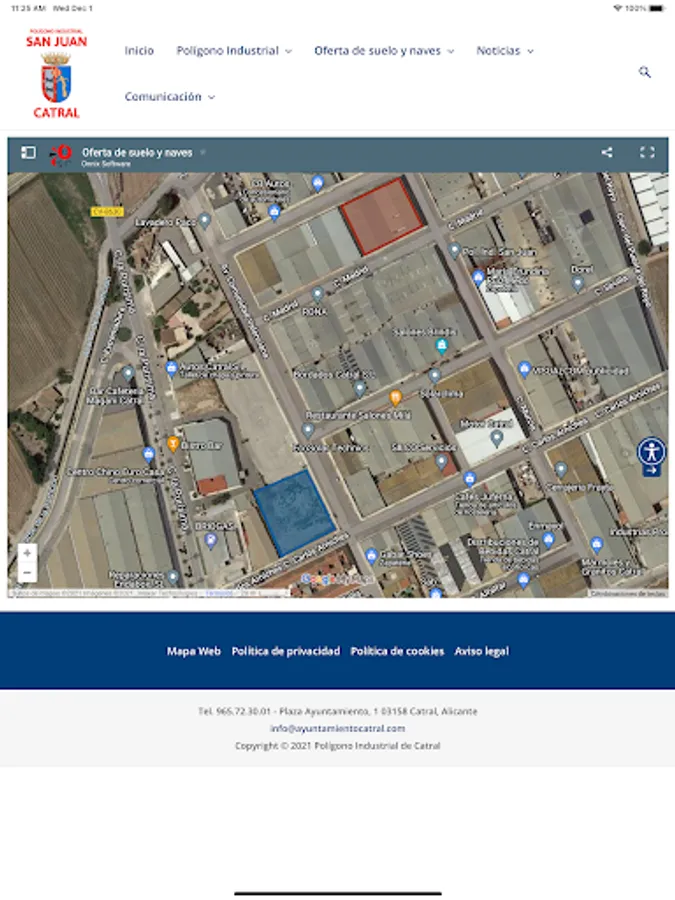 Application of the industrial estate of San Juan de Catral, which shows all the information and news of the industrial estate (directory of companies, infrastructures, land offer, news, forum, suggestion box, ...)