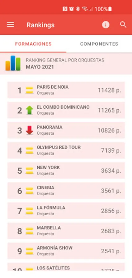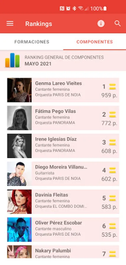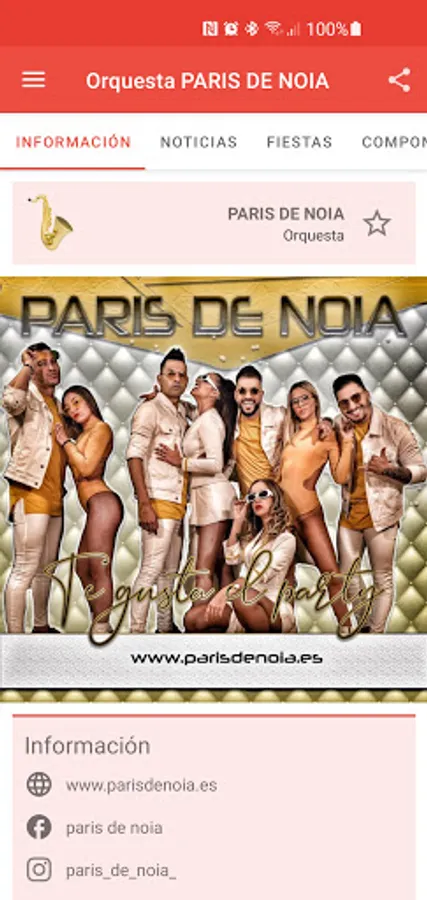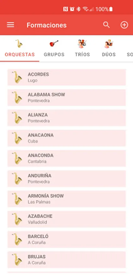 The user interface is easy and intuitive. With a simple click also provided a complete listing of all formations: Orchestras, Bands, Trios, Duos, Soloists, Charangas and Discos Mobile Galicia, where you can also view their contact details, calendar of activities, components, signings, etc. data.