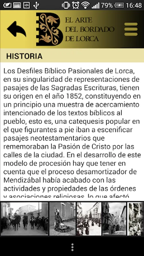 Mobile Application to support the candidacy of Art Embroidery in Lorca and its staging in the Bible-Passionate, parades to the Representative List of Intangible Heritage by UNESCO.