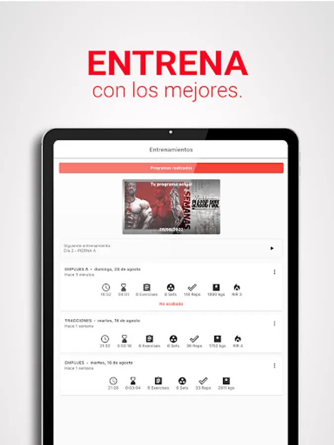 It does not matter if your goal is to improve your performance, achieve greater hypertrophy or even compete in Powerlifting or Bodybuilding, in our app you will find the training programs of the best athletes and influencers in the fitness sector.