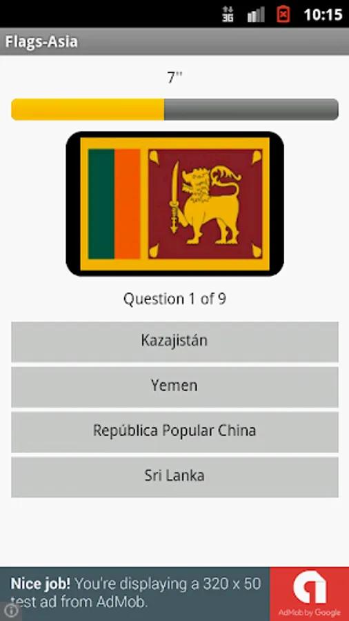 The app randomly select nine flags of the 48 countries in Asia and gives you four options to choose from.