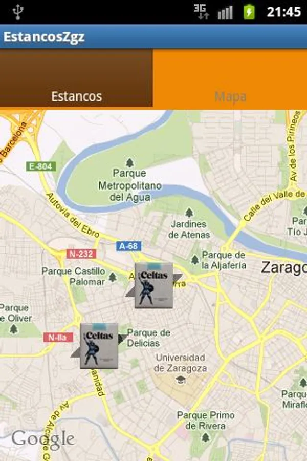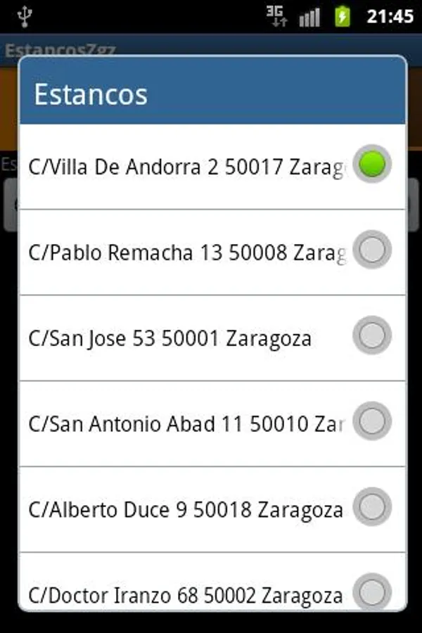Search watertight city of Zaragoza, after obtaining GPS position tells you the closest to your position.