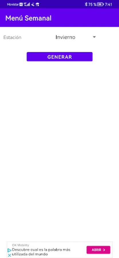 Weekly menu generates the menu for seven days randomly taking data from your BD in which there are 31 first and 31 second winter and summer menus.