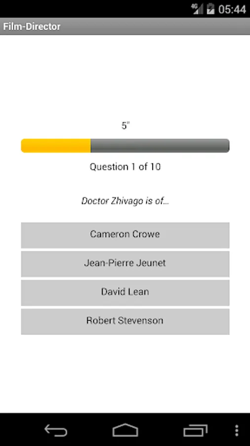 With Movie Director you can test your knowledge of movies, the app has in its DB 100 films with director and asks in block 10 to 10 giving 4 options.