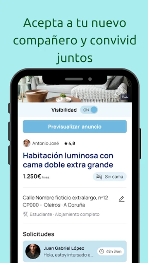 * If you have plenty of room and what you are looking for is to share expenses, "publish your ad" is your place, make a short description, complete the bio, upload the best clear and bright photos of your apartment (preferably without filters, we like them natural things) establish the entry requirements and that's it, wait for your ideal partner. And if patience is not your thing, highlight your ad for €5.99 and make your perfect partner one of the first to go out (the one that meets the requirements you have established).