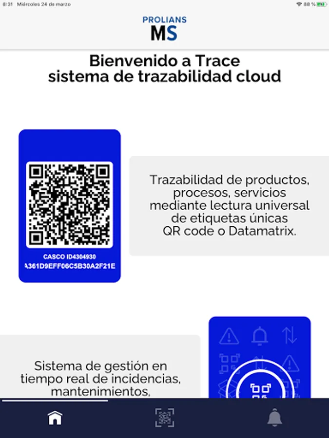 MS Pro + is a professional product traceability solution that allows, through the scanning of a QR code or Datamatrix, access to a series of documentation, incidents and events related to the product. MS Pro + allows users to get resources about products through tag reading and get real-time updates on events or incidents that may appear.
