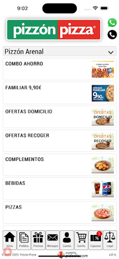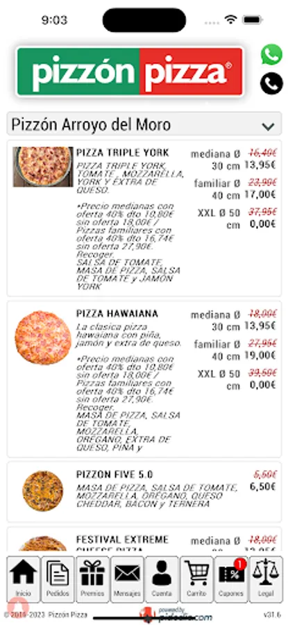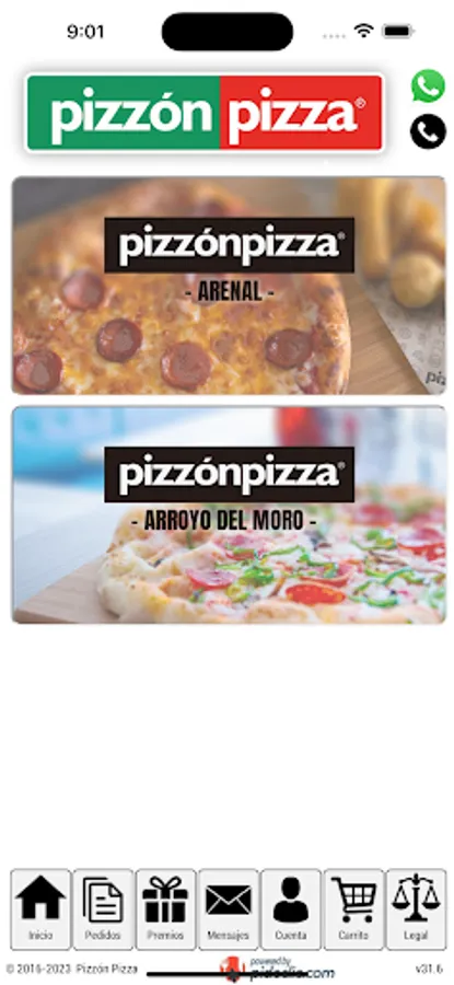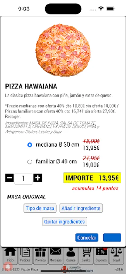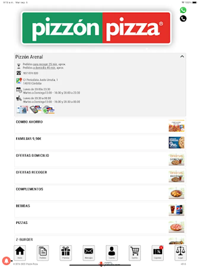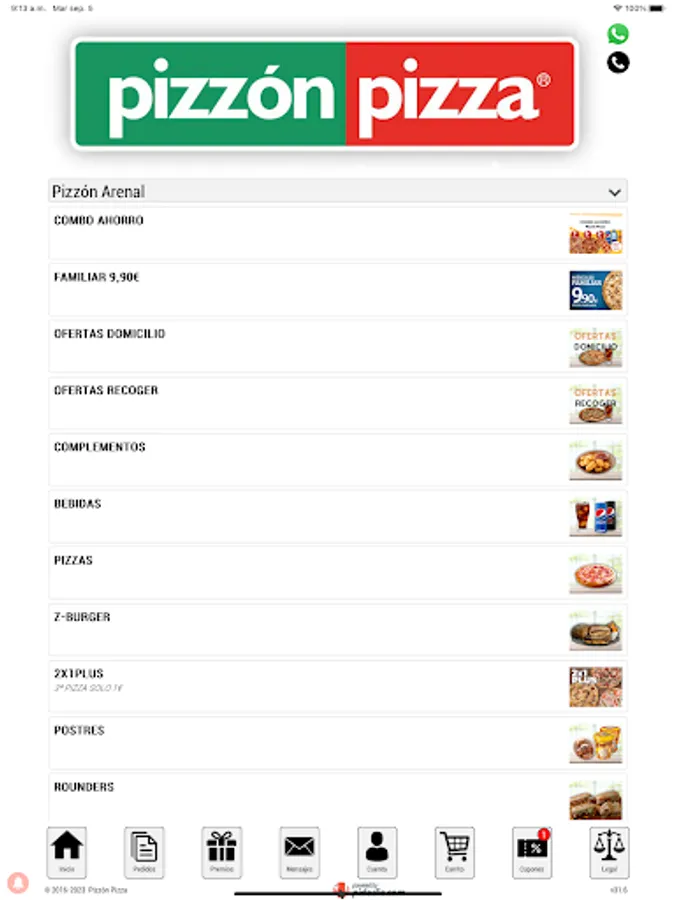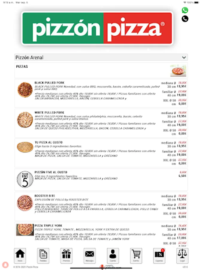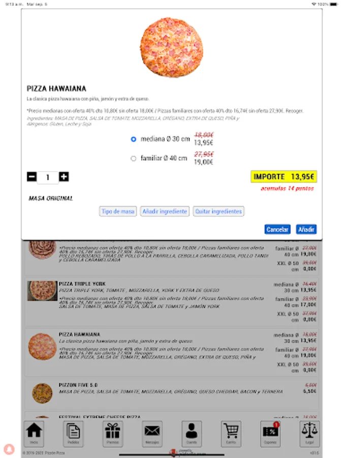 Pizzón Pizza online ordering app with points program, discount codes and offers