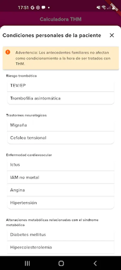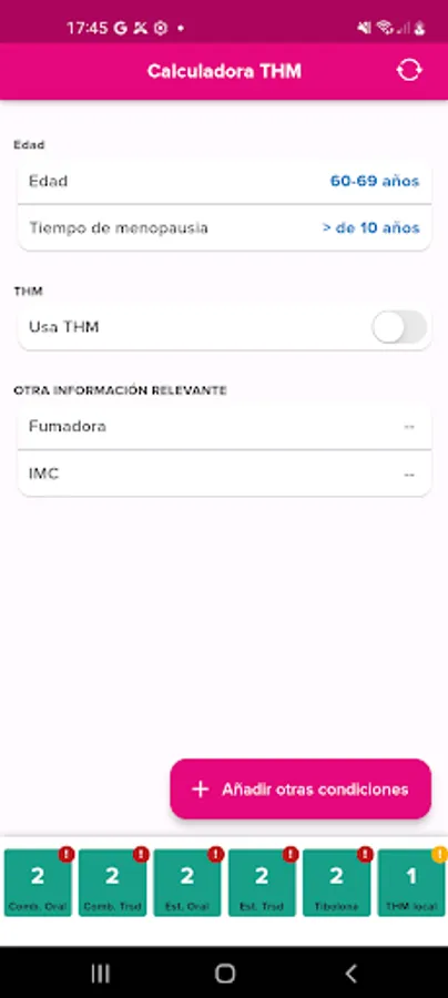 The THM Criteria App has been developed with the aim of helping professionals choose the most appropriate hormone therapy for each woman. Based on the responses to a questionnaire, the program identifies the treatment for climacteric symptoms that best suits the user's conditions. It has been designed based on the consensus document on the eligibility criteria for the THM, published by the AEEM with the support of 21 other scientific societies.