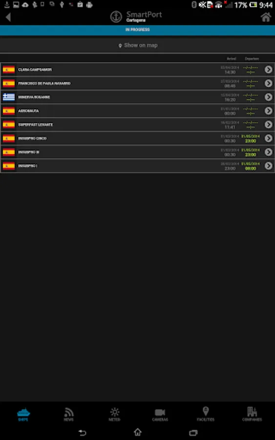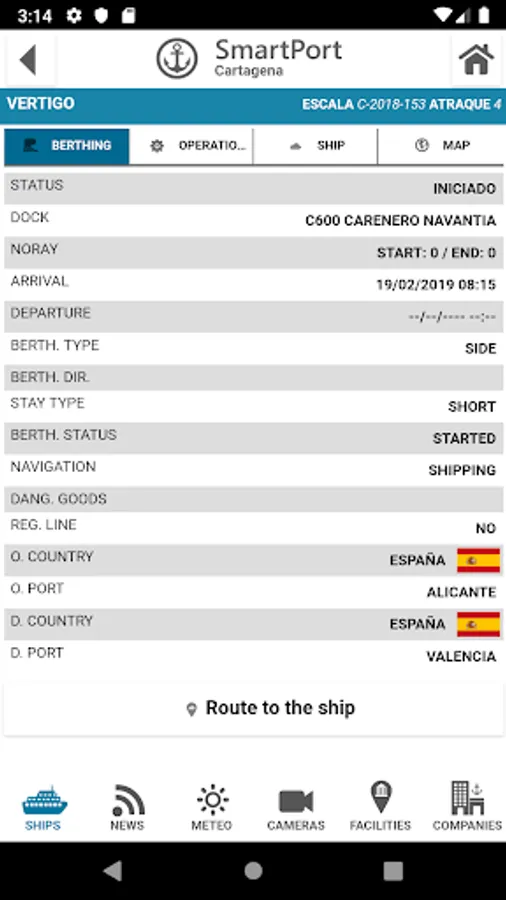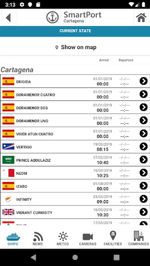 * Get instant access to a list of existing ships in the Port.