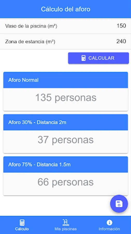 Calculate the capacity of your pool according to different parameters of capacity control. Tool to help you safely reopen your pool.
