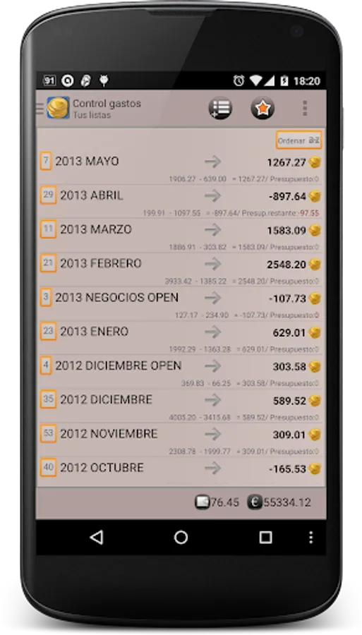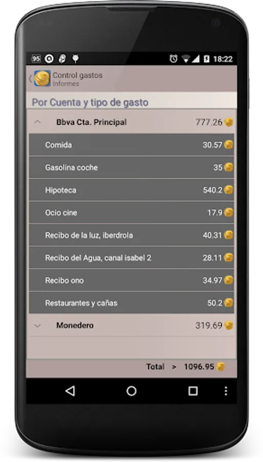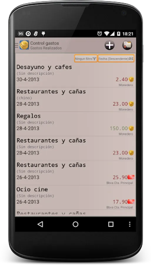 Control Expenses is a highly flexible powerful application that lets you control your expenses and income through lists, and even if you wish, you can control the finances of your home or your business thanks to the posibility to create accounts, purses and fictitious loans.