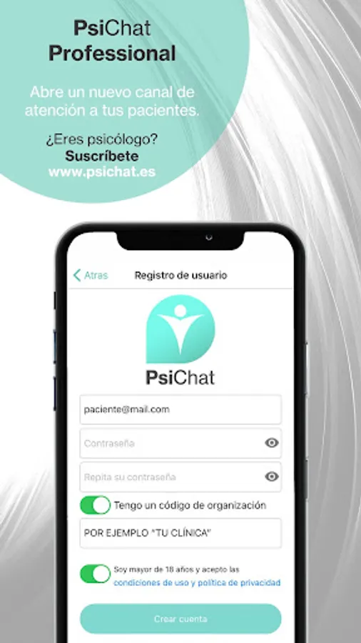 -PsiChat Professional (Cloud / SaaS) (Necessary Organization Code, which your psychologist will give you)