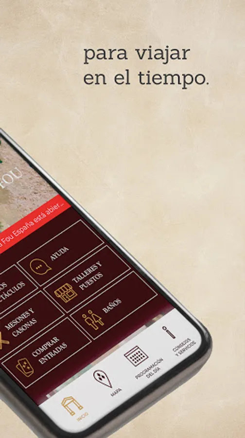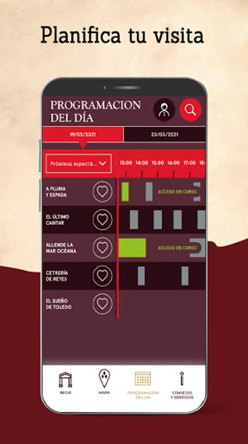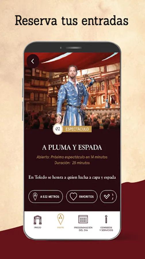 Use it as a complement to the visitor's guide that you will receive when you enter Puy du Fou España. Find the program for the day, the different catering outlets, the Stalls and all the services available. Check the opening times of each show so you won't miss a thing.