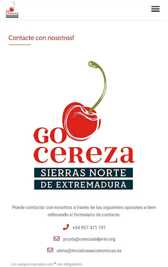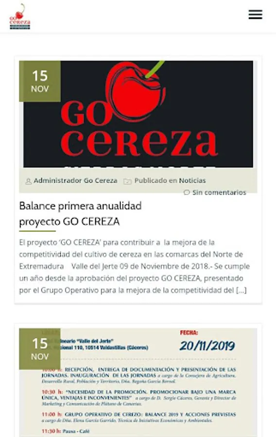 Application for information on news and developments published on the Go Cereza Sierras Norte de Extremadura website, whose objective is to improve the competitiveness of cherry farms in the mountains of northern Extremadura and increase their share of value in the food chain.