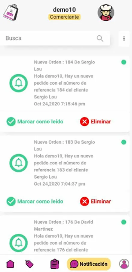 You will receive alert notifications of new orders, reservations, you can change the status of the order and above all select one of our dealers from Quecoemrcio.es