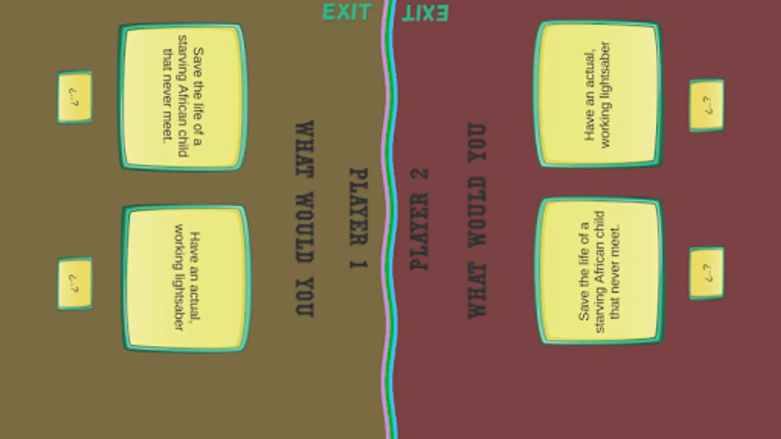 This game, is used by many youtubers to make videos for hours, asking questions about what you would prefer or what you prefer.