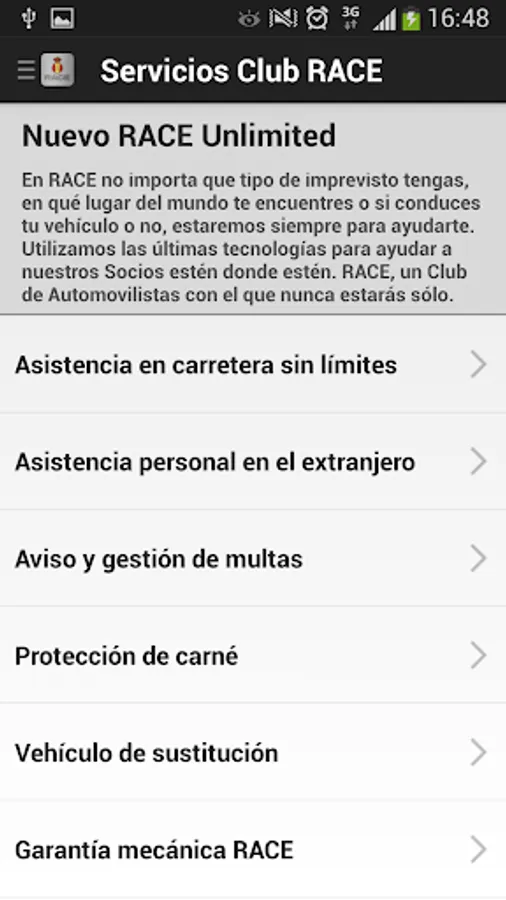 From this application you can also calculate your routes with estimated time of arrival and date traffic information and radar. If you become a Member of RACE can access services, content and exclusive discounts for you.