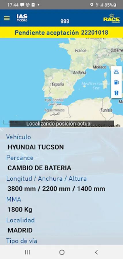 The application at all times from the start of the shift until it ends is sending its GPS position to the central to be able to visualize its position, as well as its status (free, rest, locating, on duty, etc.) on a map to its monitoring and supervision and, thus, be able to assign the closest services to the provider's position.
