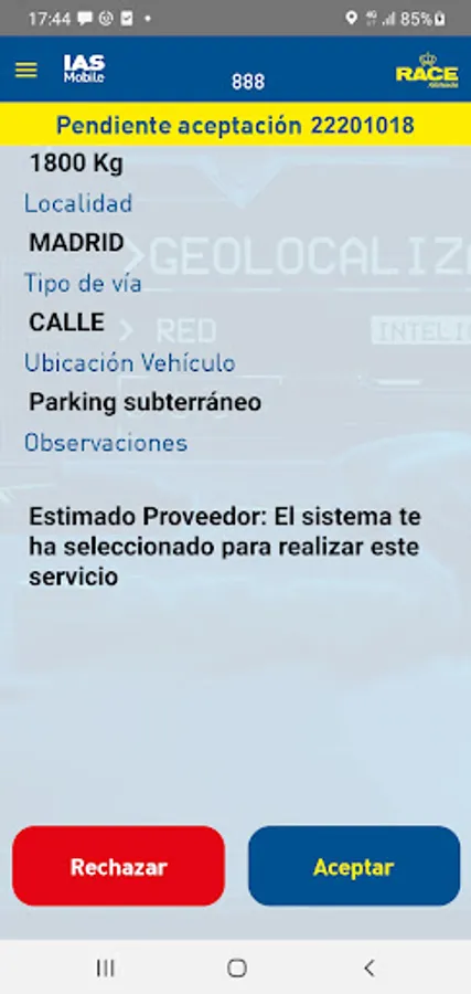 The IASMobile application, which runs on smartphones with the Android operating system, is the component of IAS (Integrated Assistance System) carried by assistance providers for receiving and exchanging information on assistance services.