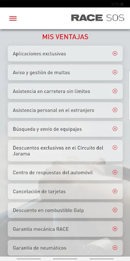 In addition, you will have your RACE membership card in the application, and you can use it to enter the AENA VIP lounges of the main airports in Spain and you can request access to International airport VIP lounges.