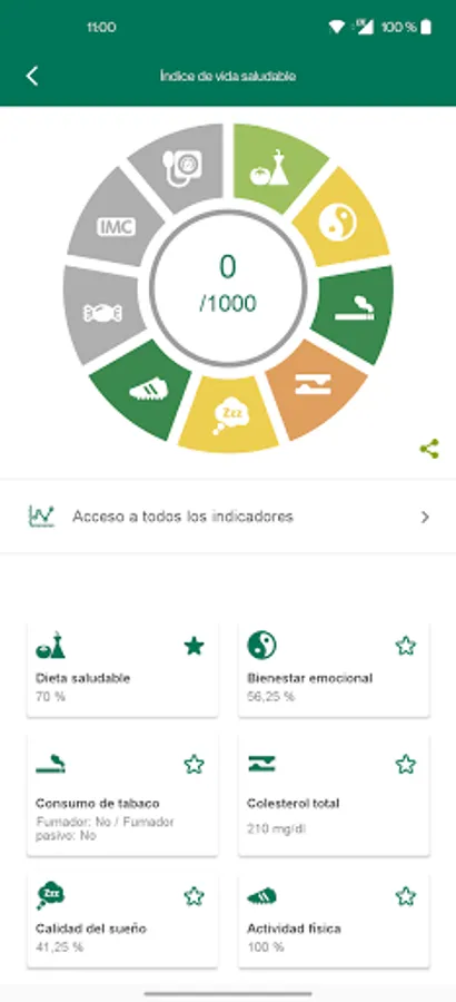• Healthy life index, a value from 0 to 1000 that lets you know if you are on the right track in adopting a healthy lifestyle.
