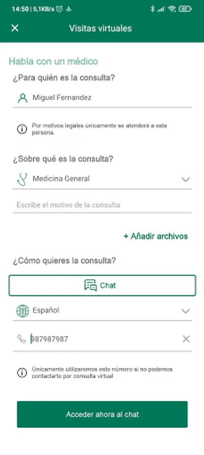 • Virtual consultation: with general medicine by video, chat and voice.