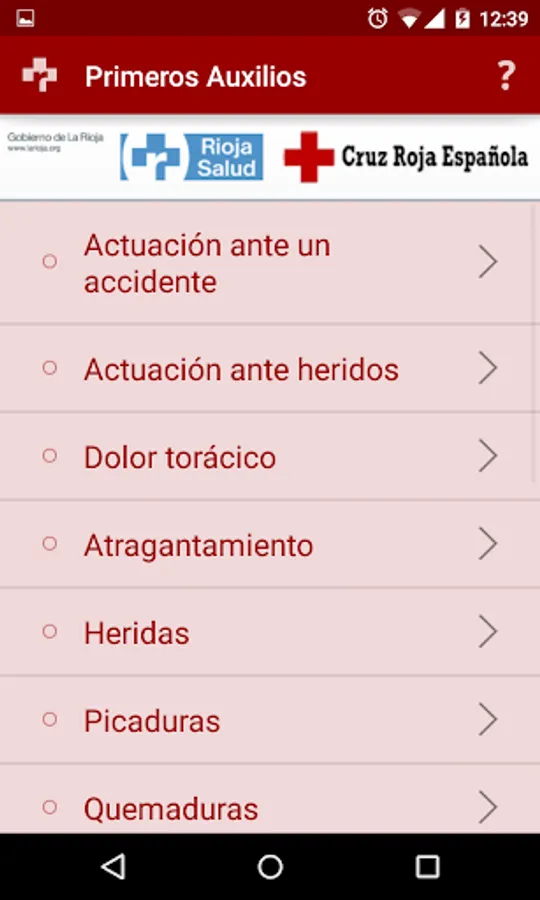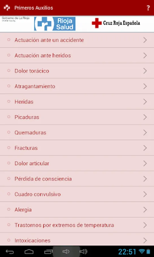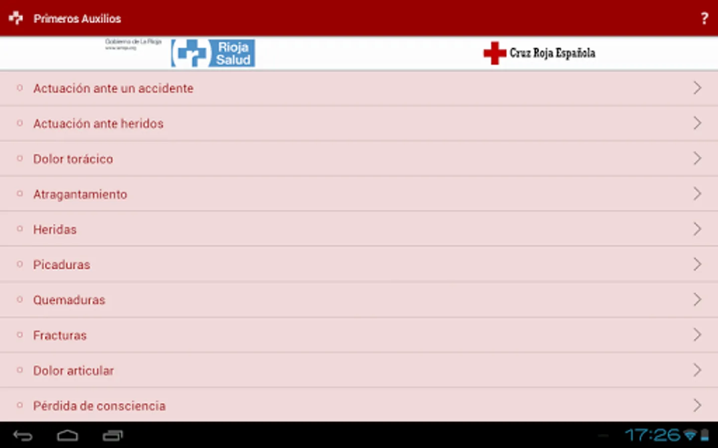 + A small first aid guide with basic procedures (also offline). There is a more extensive video guide accessible from this section.