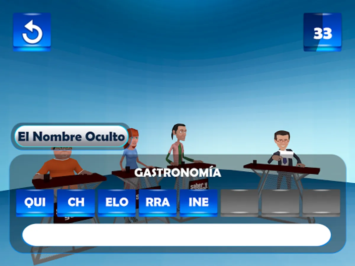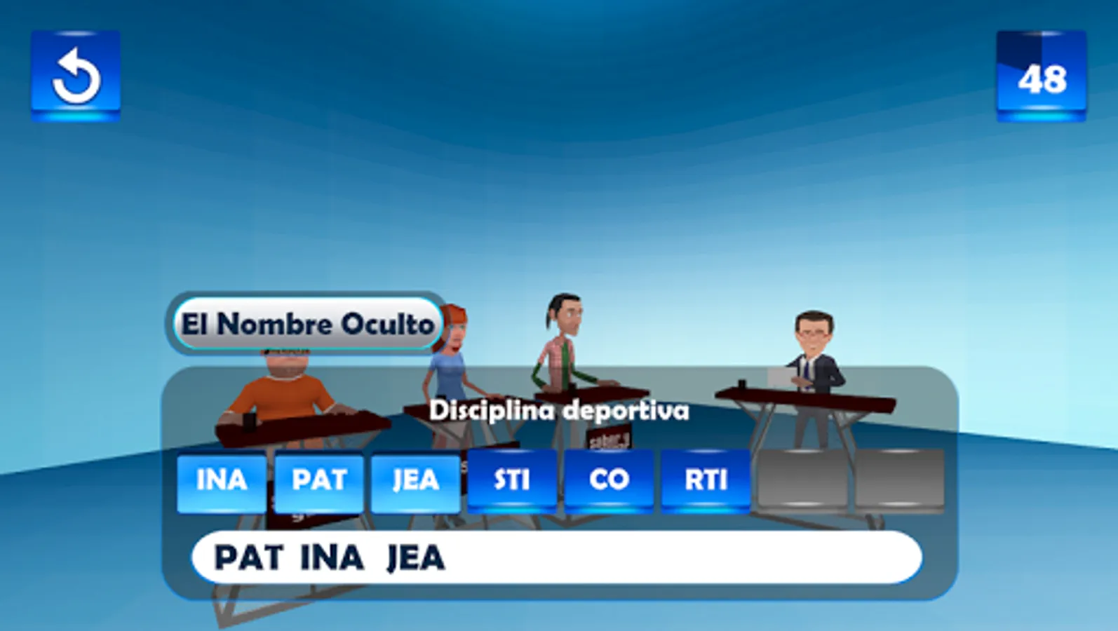 - The hidden name: complete three themes composing the correct answer from groups of three letters.