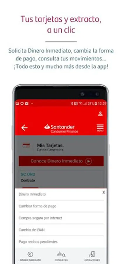 Santander Consumer España, with more than 45 years of experience, is the Santander Group's specialized unit in consumer finance. Now with the app you can manage where and when you want your cards or loans easily and quickly.