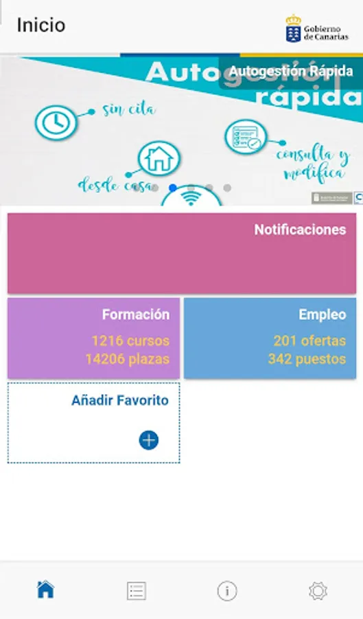 The application also has a news and notices service (which includes push messaging) so that the citizen is at all times informed of the news of the Canary Employment Service and the publication of job offers.