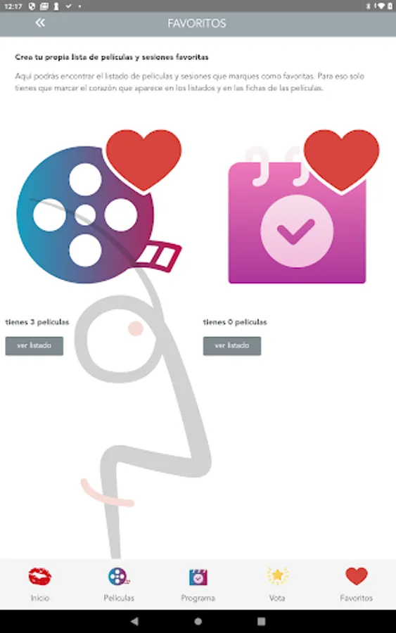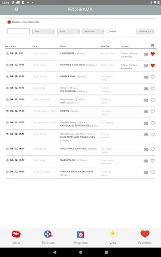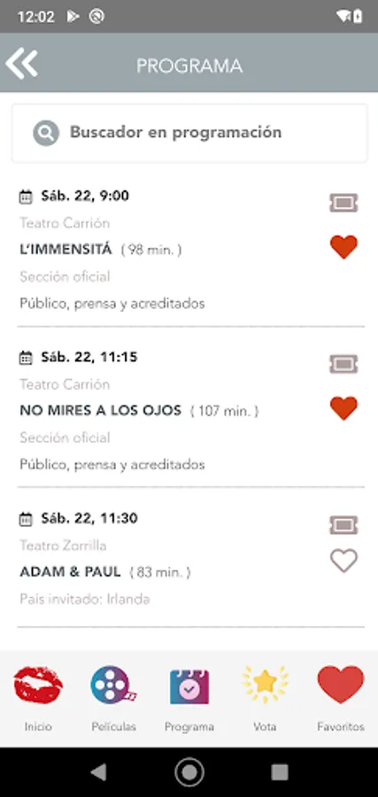 Plan your festival thanks to the favorites system, which allows you to create an individual list of both films and sessions, and don't miss out on anything that interests you.