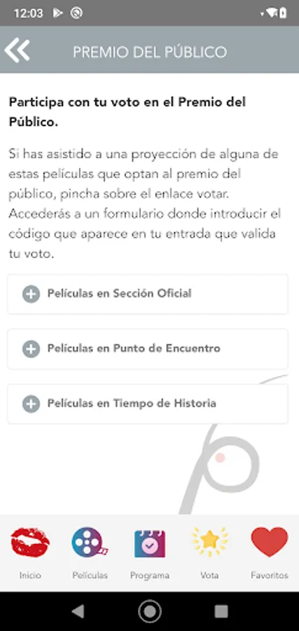 You can also participate with your opinion by awarding the Audience Award. Go to the "vote" section and enter your ticket code to validate your vote.