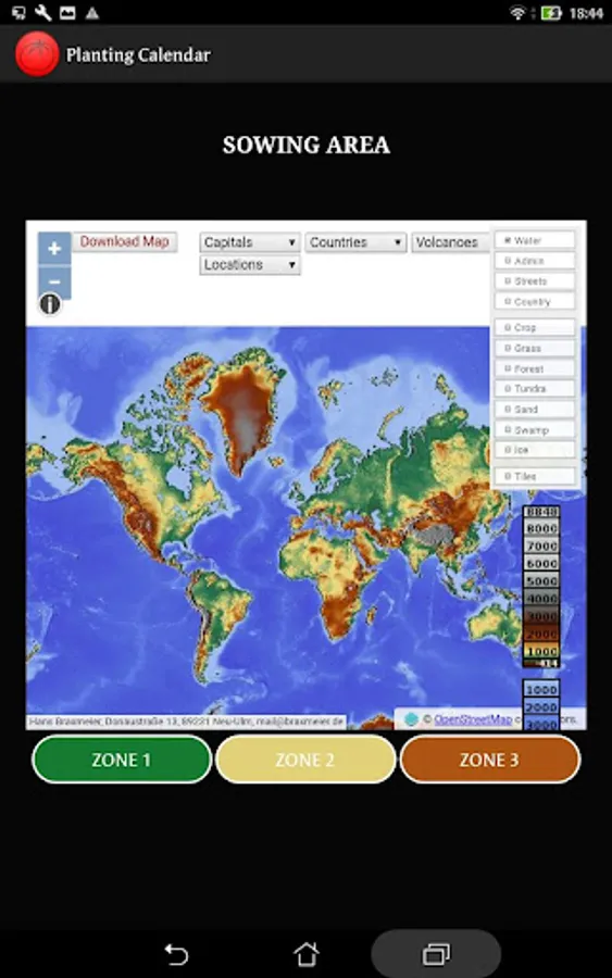 Interactive map with zoom to access the planting area.