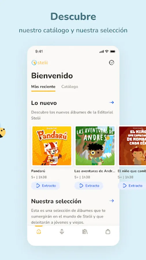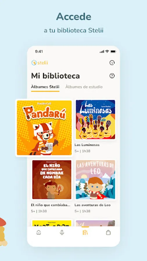 With the Stelii mobile app, tap Stelii's audio album catalog at any time and record your My Story Factory adventures for free.