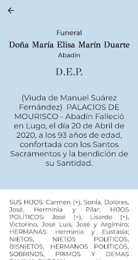 Directory of obituaries of Galicia, with funeral and anniversaries search engine and with the option of receiving direct notifications each time new contents are incorporated.