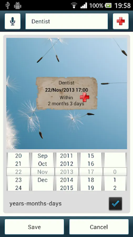 Update 1.3. Now you can choose days or days month and years to calculate the count down.